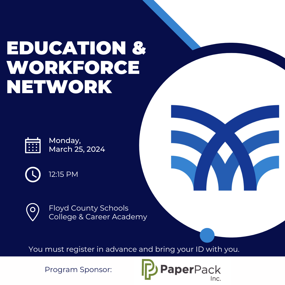 On Monday, March 25th at 12:15 PM we will have our quarterly meeting for our Education & Workforce Network. We would like you to join us at the Floyd County Schools College & Career Academy. We will be discussing recent workforce news and several things on the education horizon here in Rome and Floyd County. Additionally, you will be able to tour the Floyd County CCA and see the pathways and programs offered.